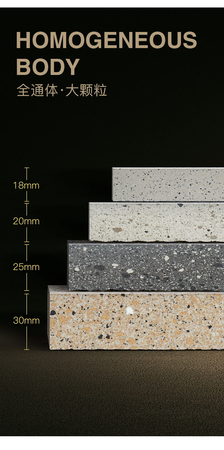 冠源在產(chǎn)品開發(fā)、研發(fā)新技術(shù)、新工藝等方面先人一步,領(lǐng)先行業(yè)推出20mm、25mm、30mm等規(guī)格的厚磚。相比于普通的石材和磚體,其磚體硬度、重量、抗壓性、抗折性等方面更勝一籌,一躍成為西南地區(qū)首屈一指的、技術(shù)實力雄厚、產(chǎn)品質(zhì)量過硬、花色規(guī)格齊全的厚磚生產(chǎn)企業(yè)。